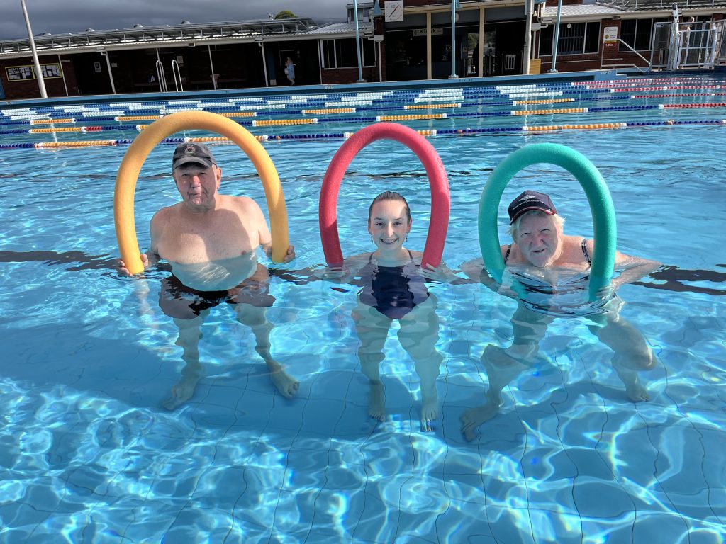 Aquarobics participants Gary, Tiana and Chris Boyce, Dapto Pool